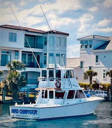 The Hard Charger is a custom 40' Resmondo. It is US Coast Guard licensed to carry up to 15 passengers! It has a full cabin with with air conditioning, a bathroom and comfortable seating for your deep sea fishing Destin fl!